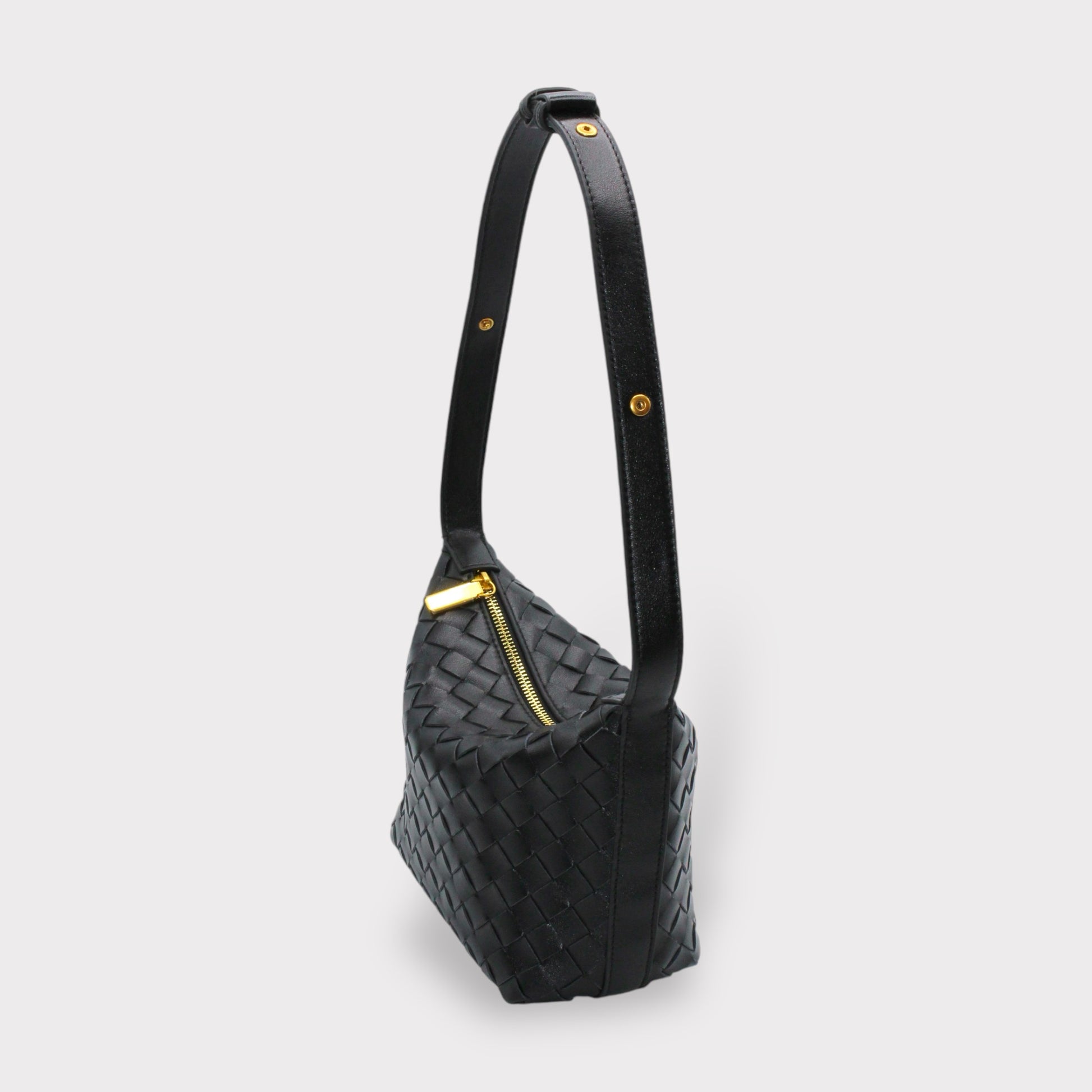 Den Schultergurt dieser Tasche haben wir so weiterentwickelt, dass sie sich bequemer auf der Schulter tragen lässt. Durch Kürzen des Schultergurts kann sie auch als Clutch verwendet werden.
