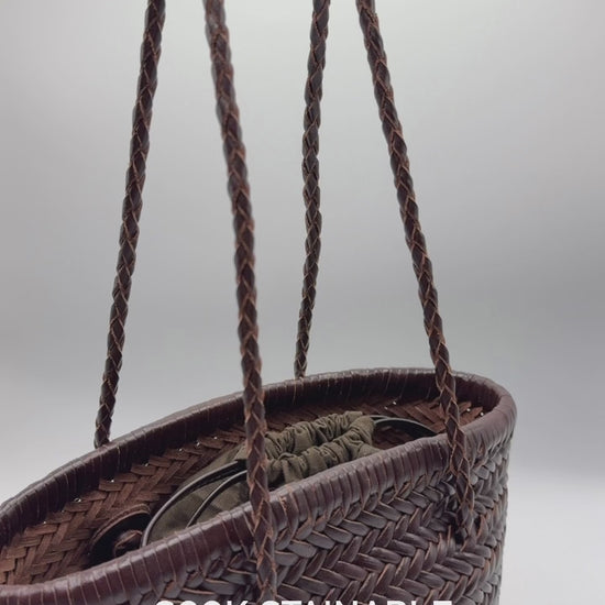 <tc>Carmel – Handgewebte Schultertasche aus Leder Schokolade</tc>