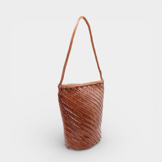 Esmée - Handmade Woven Bucket Shoulder Tote Bag Caramel