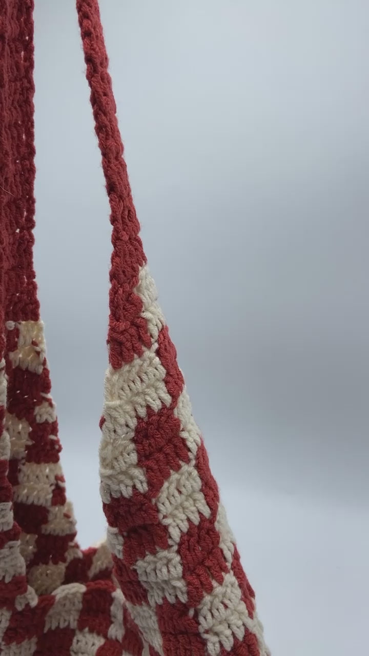 베리 레드 체크 무늬 패턴 체스 크로 셰 뜨개질 토트 백