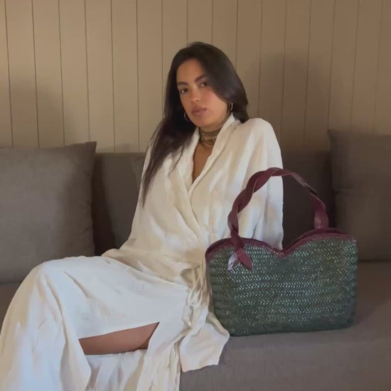 Léafa - Handwoven Artisan Shoulder Bag Burgundy & Green