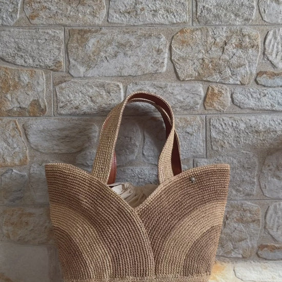 Yasmin - Handmade Natural Raffia Tulip Tote Bag Khaki Color